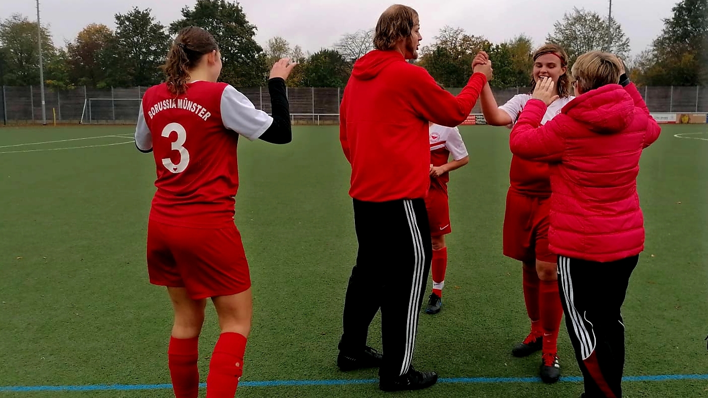 Am Sonntag, den 17.11.19 ergatterte die Geistelf von Borussia Münster einen 6:0 Auswärtssieg beim SW Havixbeck. Bei perfektem Fußballwetter kam die Borussia Elf schnell ins Spiel und in der 13. Minute war es Virginia Dieckhues, die nach einem abgewehrten Schuss von Ronja Steimann, die Borussia mit einem Nachschuss in Führung brachte. Nur zwei Minuten später schlug Jessica Kelly zu, die mit 22 geschossenen Toren nach nur 11 Spielen an der Spitze der Torjägerliste steht. Es war wieder Ronja Steimann die sich gekonnt im Mittelfeld durchsetzte und den Ball an der Grundlinie querlegte. Zehn Minuten später war es erneut das Duo Steimann/Kelly. Dieses Mal war es Jessy, die den Ball an der Grundlinie zurücklegte und Ronny, die den Ball verwandelte. Nachdem es 3:0 stand, folgte eine unsichere Phase der Borussinnen, welche bis zur 65. Minute andauern sollte. Die Borussiaelf war unkonzentriert, was Havixbeck jedoch nicht ausnutzen konnte. In der 77. Minute legte Jessica Kelly nach einer schönen Kombination im Mittelfeld den Ball für Laureen Otte quer, welche den Ball zum 4:0 verwandelte. Nur drei Minuten später revanchierte sich Otte und legte den Ball für Kelly vor, die dann 5:0 erhöhen konnte. Und als wären diese 5 Tore nicht schon genug gewesen, setze Steimann das i-Tüpfelchen auf einen hervorragenden Fußball-Sonntag und schoss fünf Minuten vor Spielenden nach einer gekonnten Einzelaktion das 6:0.